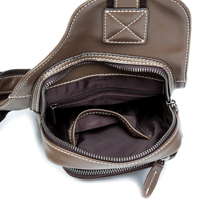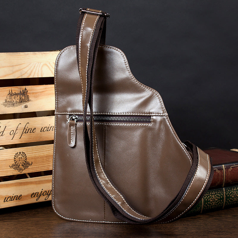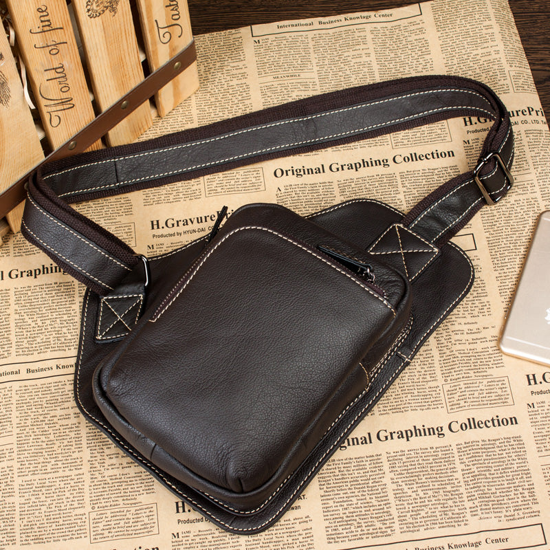 Design: Dark Brown Leather Mens Brown Cool Sling Bag Crossbody Bag Black Chest Bag for men