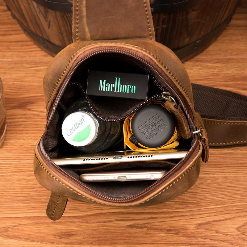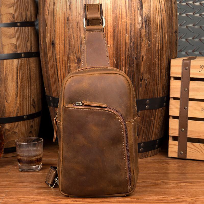 Dark Brown Leather Mens Cool Sling Bags Brown Crossbody Pack Chest Bag One Shoulder Backpack for men – uleather