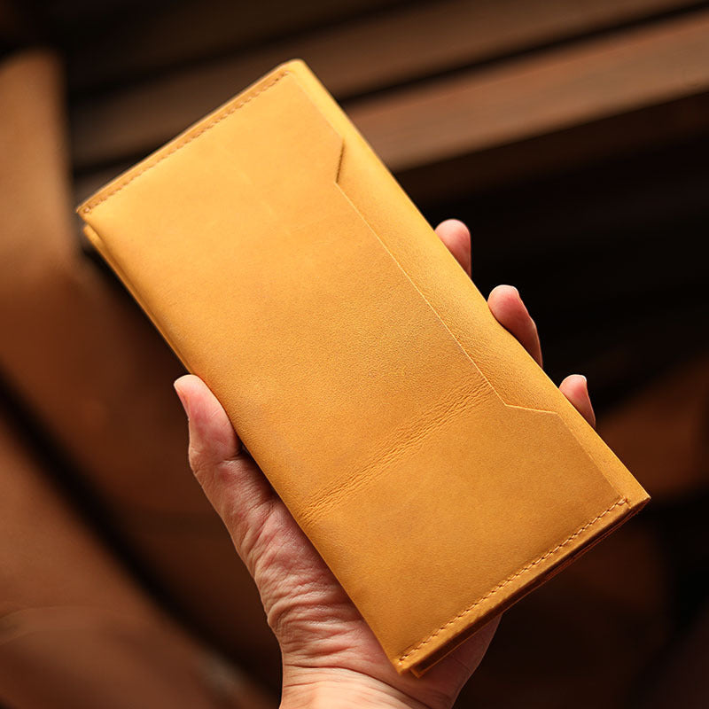Style: Vintage Brown Leather Mens Long Wallet Bifold Long Wallet Brown Phone Clutch Wallet For Men