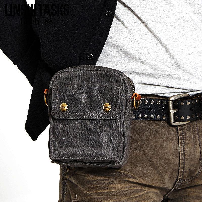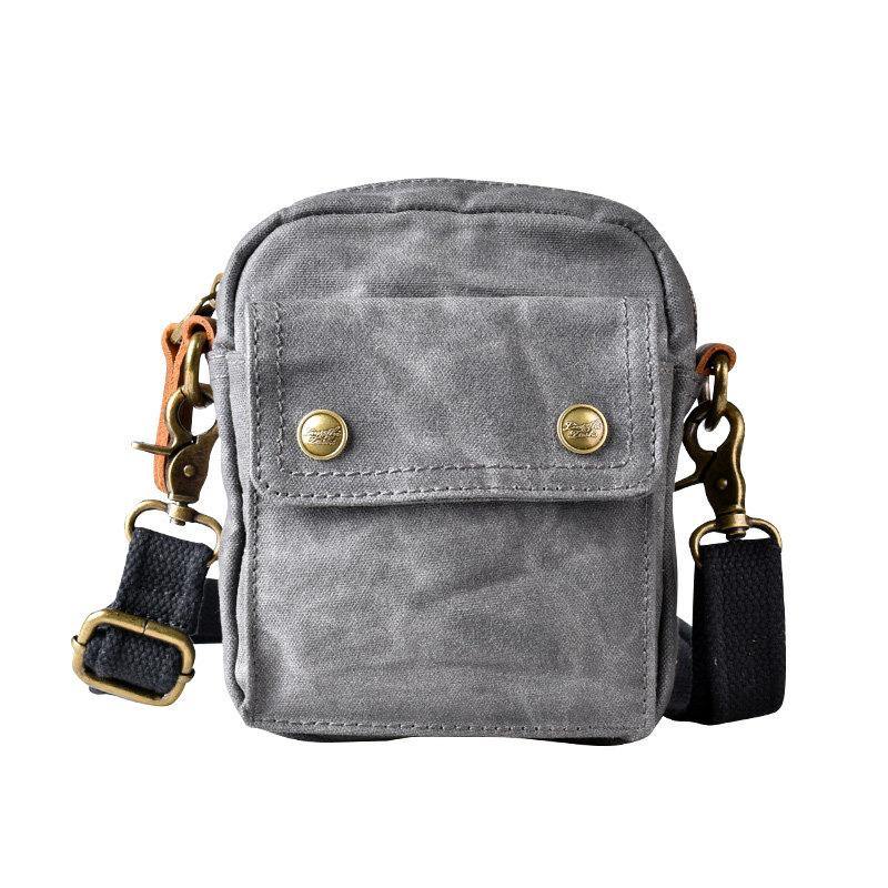Gray Cool Canvas Mens Mini Vertical Waist Bag Belt Pouch Messenger Bags Side Bag for Men – uleather