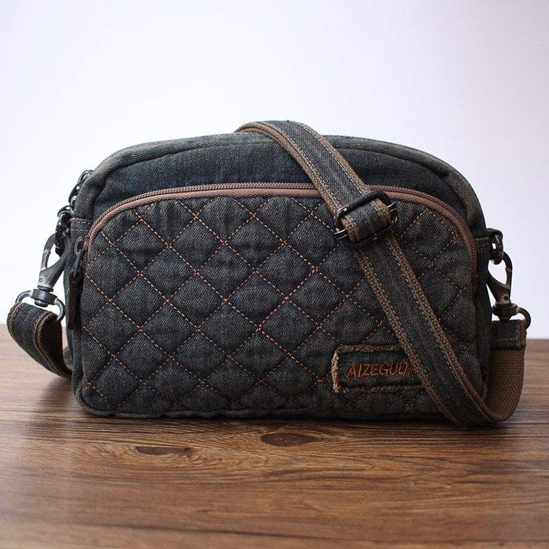 Denim Blue WOmens Diamond Shoulder Bag Vintage Denim Crossbody Bag Courier Bag – uleather