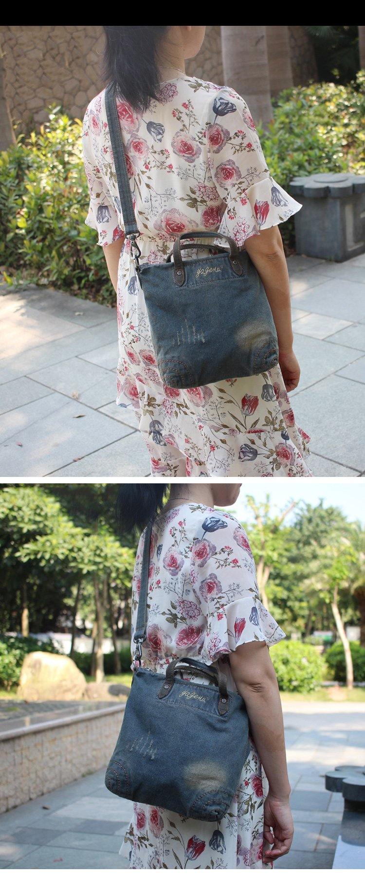 Denim Blue WOmens Mens Messenger Bag Vertical Tote Shoulder Bag Jean Courier Bag Handbag – uleather