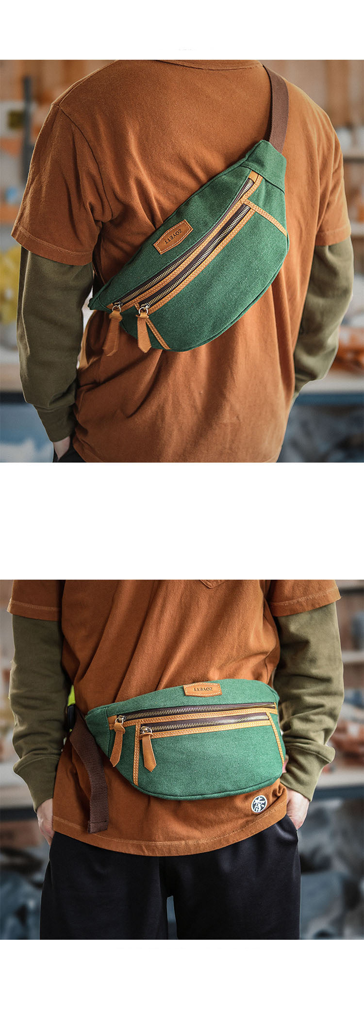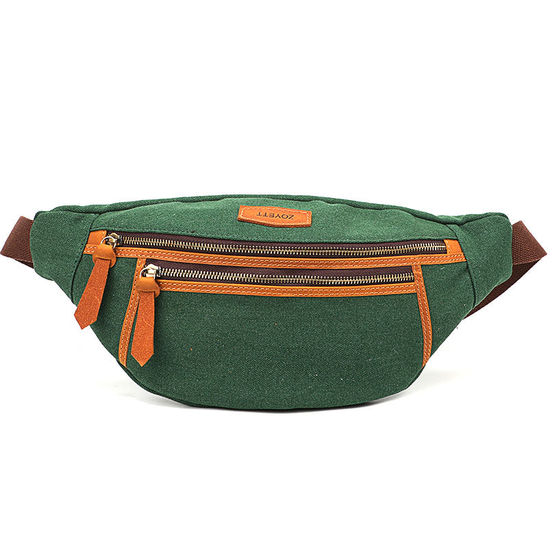 Green Canvas Leather Mens Chest Bag Waist Bag Fanny Pack Bum Pack For Men – uleather