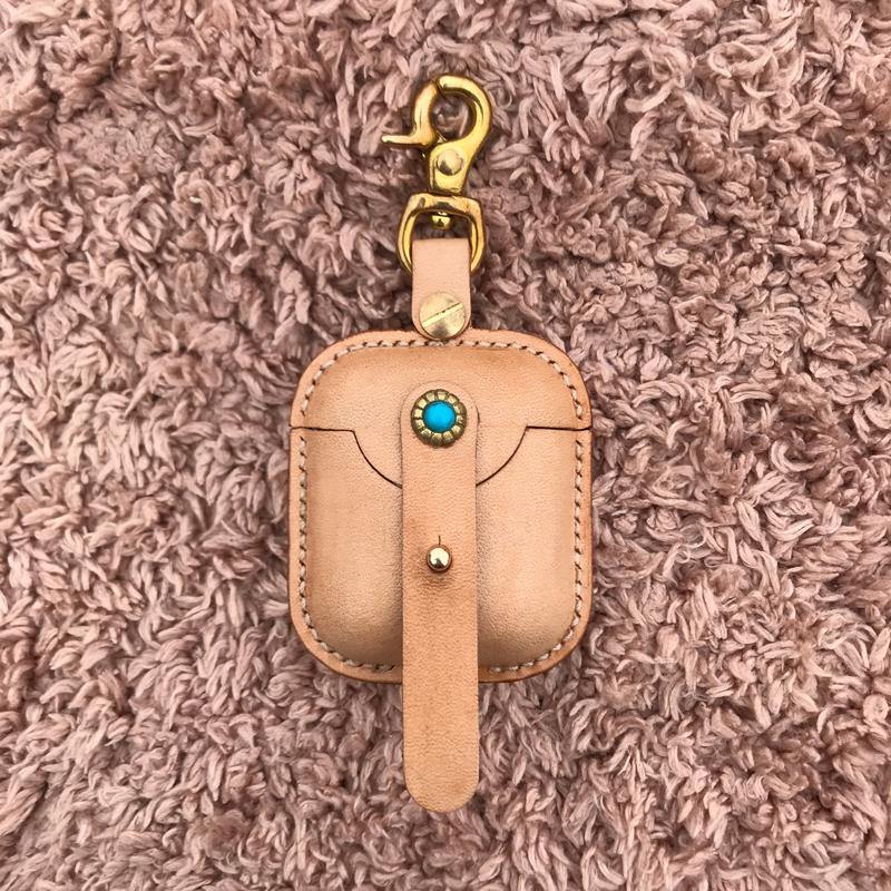 Style: Handmade Beige Leather AirPods 1,2 Case with Belt Clip Leather AirPods 1,2 Case Airpod Case Cover