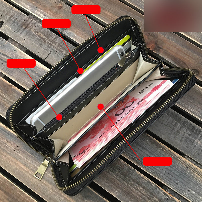 Style: Handmade Black Mah¨¡k¨¡la Wolf Leather Long Wallet Clutch Zipper Wallet For Men
