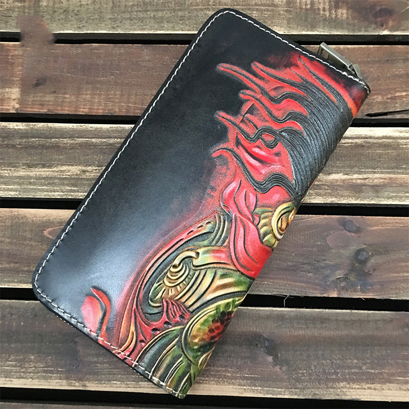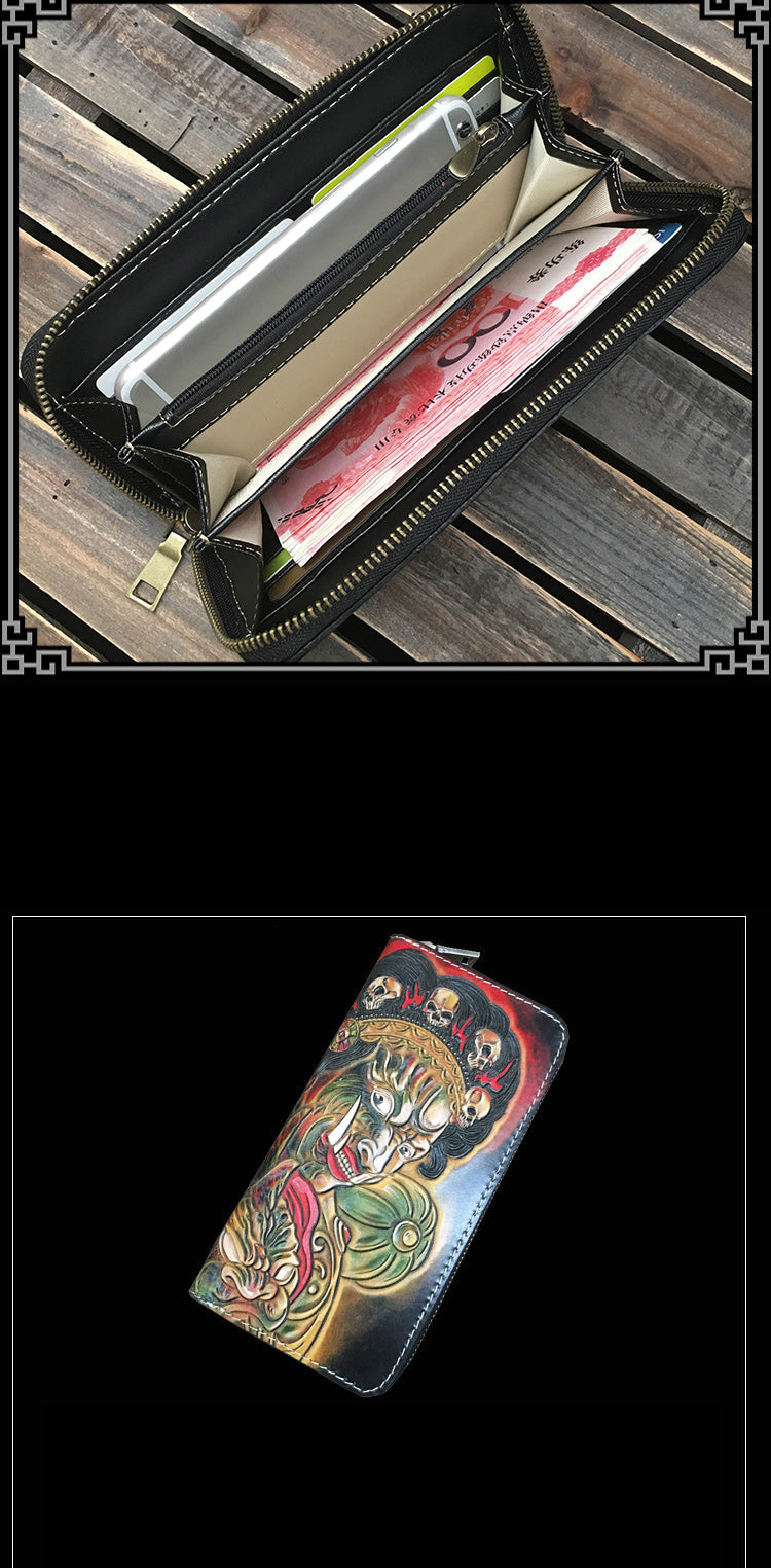 Design: Handmade Black Mah¨¡k¨¡la Wolf Leather Long Wallet Clutch Zipper Wallet For Men