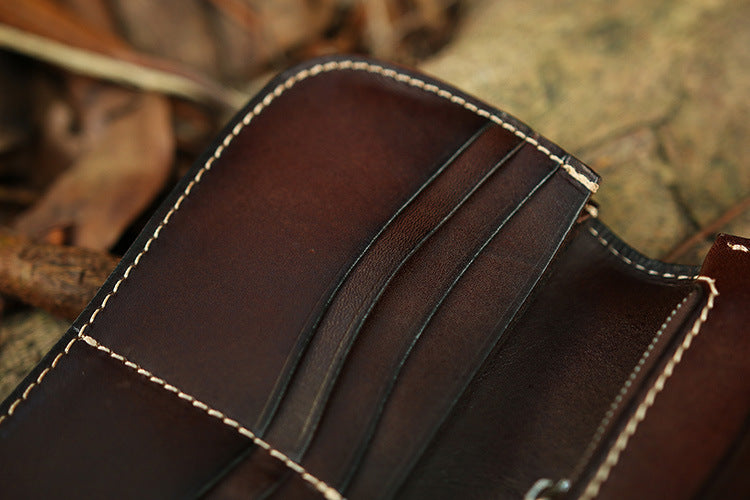 Include: A Wallet + A Chain. Material is vegetable tanned cowhide, wallet accessories are alloy accessories, (hand-colored batch of different will have a small color difference),