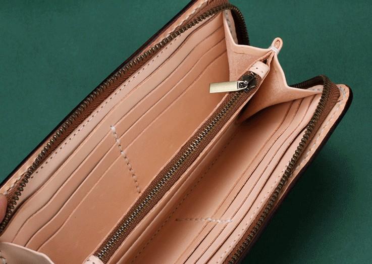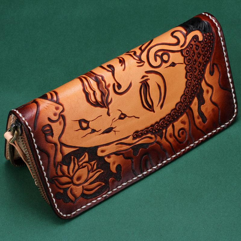Handmade Leather Mens Clutch Wallet Cool Buddha&Demon Tooled Wallet Long Zipper Wallets for Men – uleather