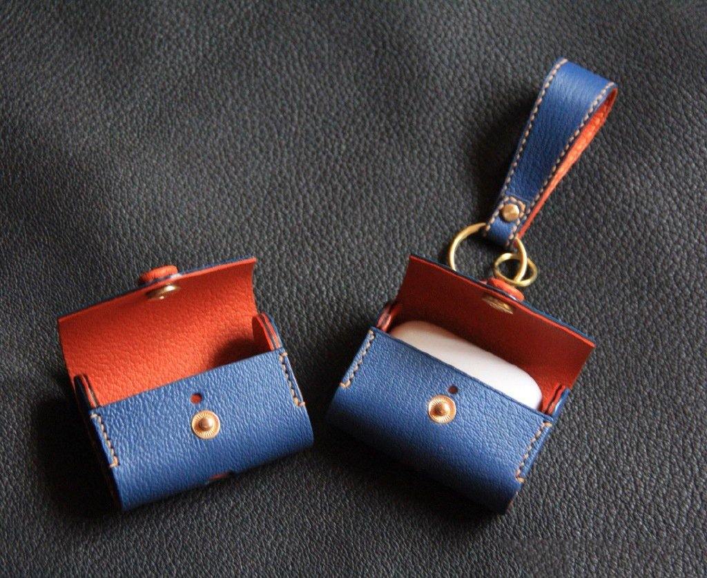 Handmade Light Blue Leather AirPods Case with Keyring Leather AirPods Case Airpod Case Cover – uleather