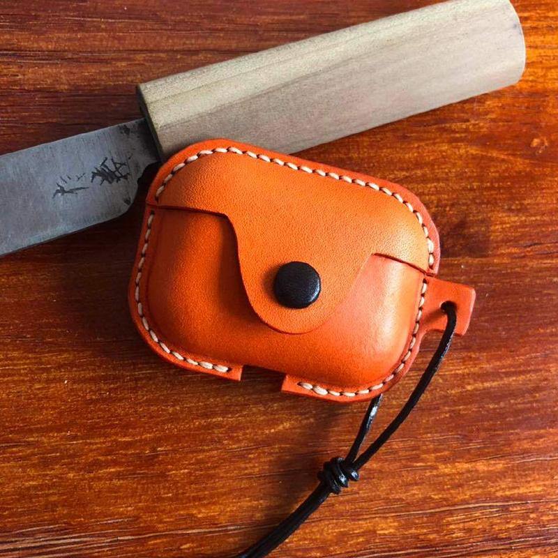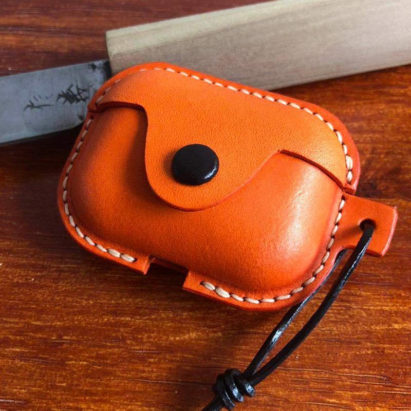Handmade Orange Leather AirPods Pro Case Leather AirPods Case Airpod Case Cover – uleather