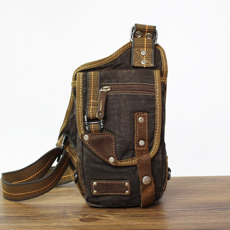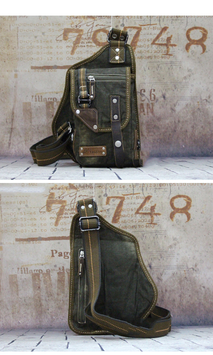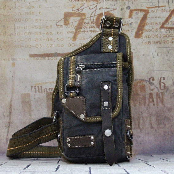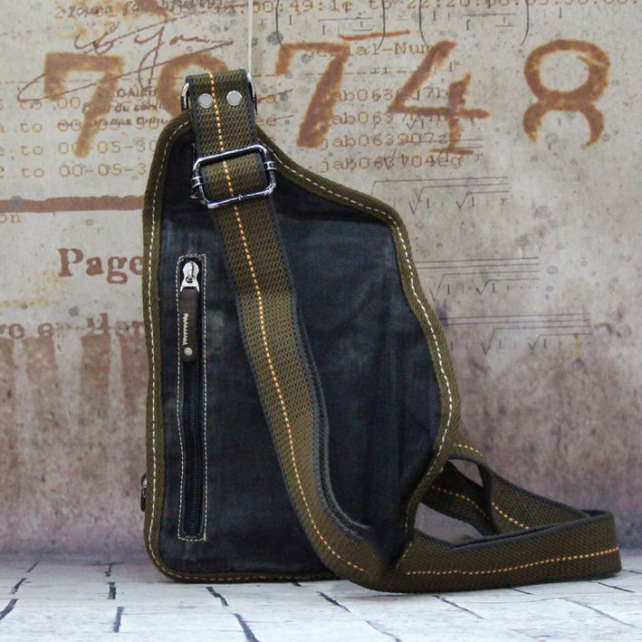 Canvas Black Mens Chest Bag Green Sling Bag Canvas Sling Backpack For Men – uleather