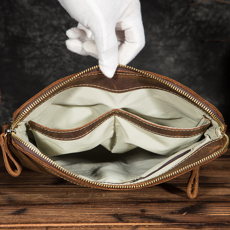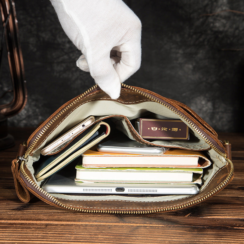 Vintage Brown Leather Men's Small Vertical Messenger Bag Side Bags Courier Bag For Men – uleather