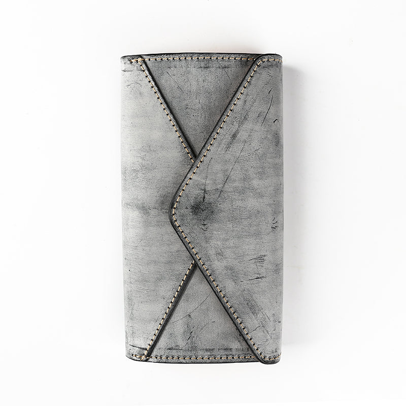 Handmade Leather Mens Gray Envelope Long Wallet Blue Long Wallet Clutch Bag For Men – uleather