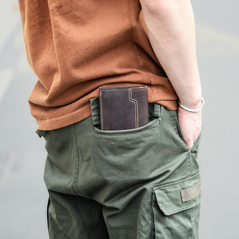 Cool Dark Brown Leather Mens Trifold Long Wallet Multi-cards Long Wallet For Men – uleather