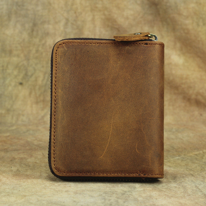Vintage Bifold Leather Men's Zipper Small Wallet billfold Zipper Wallet For Men – uleather