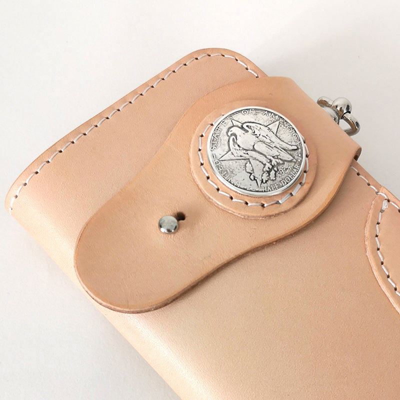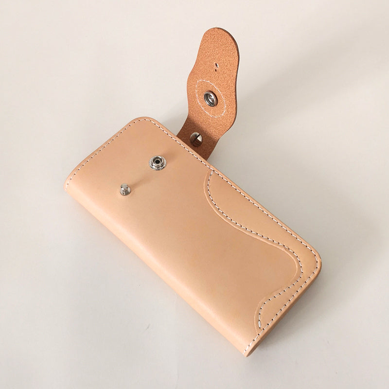 Design: Simple Japanese-Style Men's Leather Long Wallets Light Beige Bifold Card Wallet For Men