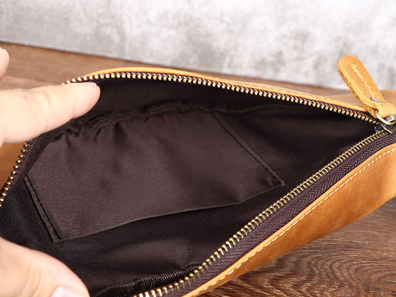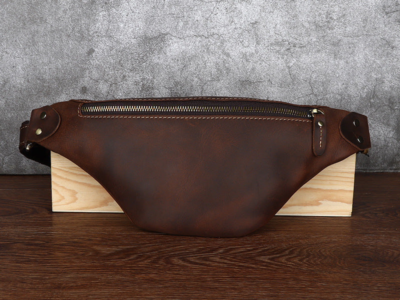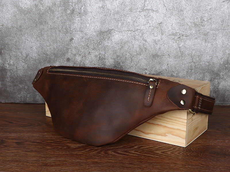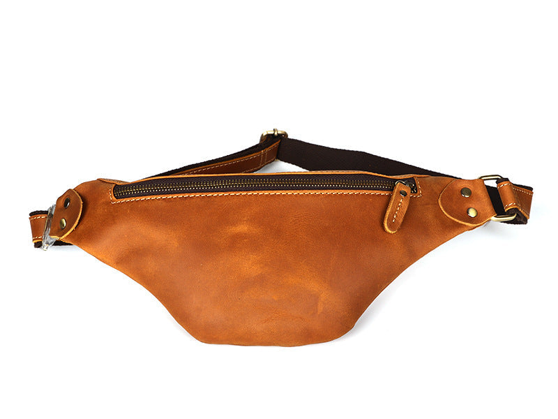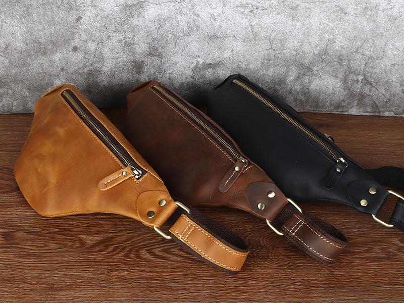 Tan Mens Fanny Pack Leather Slim Bum Bag Black Hip Pack Chest Bag For Men