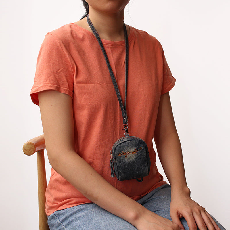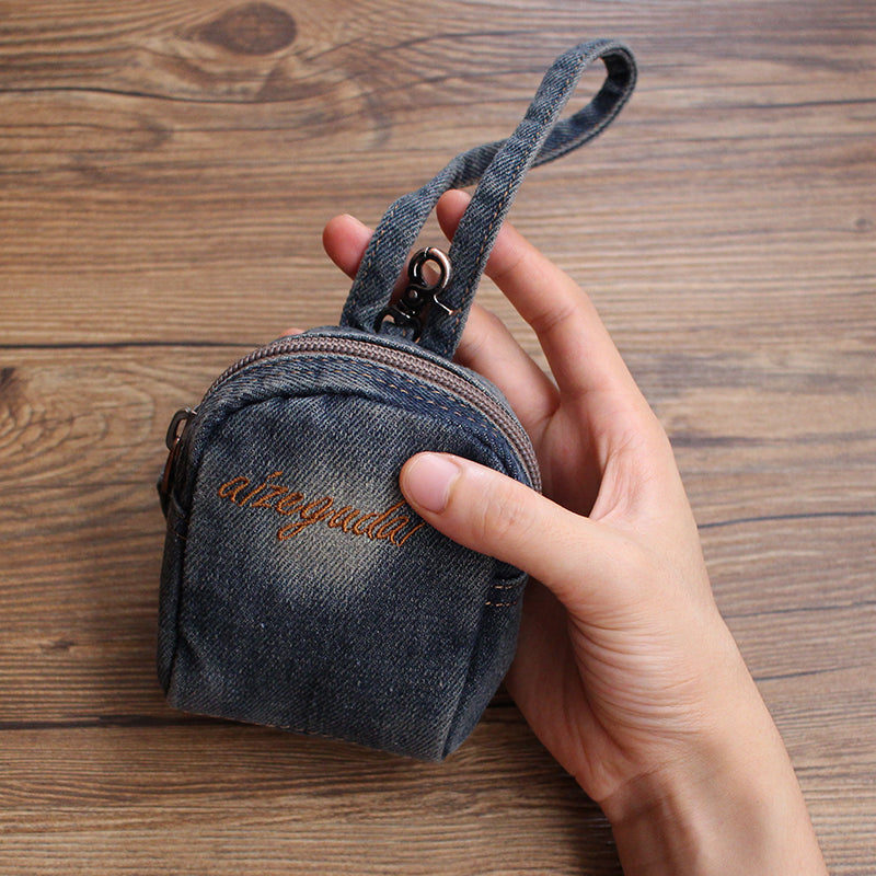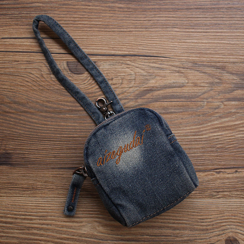 Vintage Womens Denim Small Card Coin Purse Denim Mini Pouch with Lanyard for Women