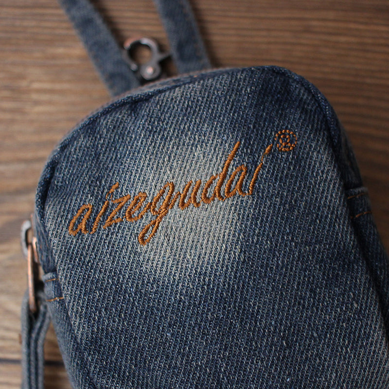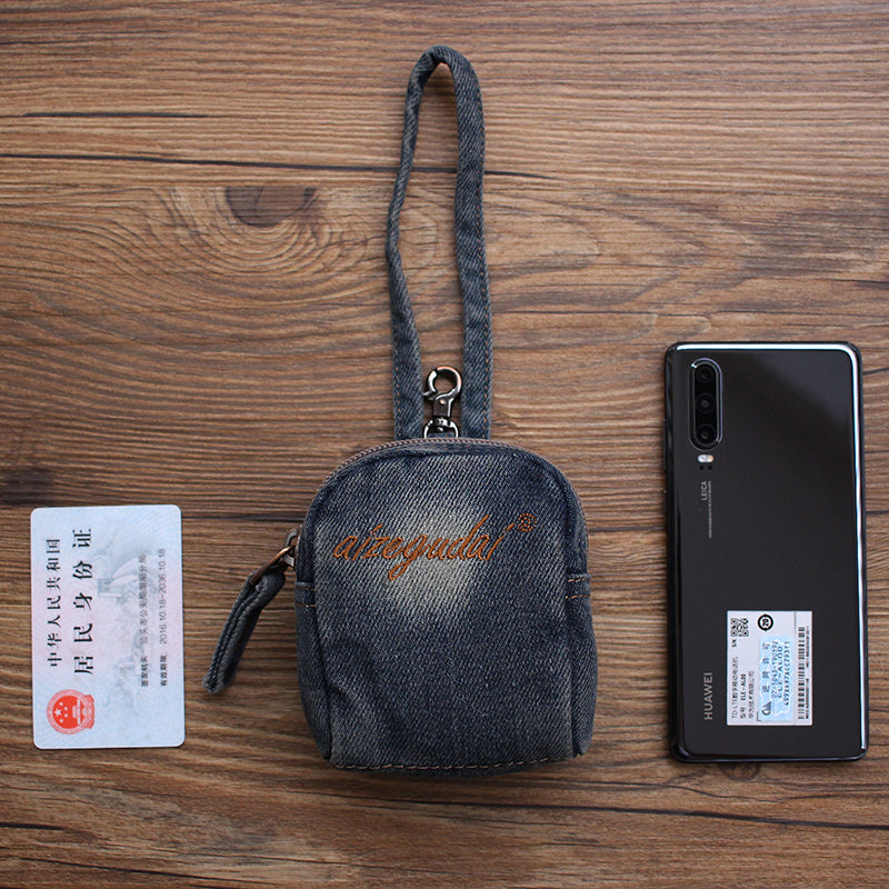 Design: Vintage Mens Denim Mini Pouch Denim Small Card Coin Purse with Lanyard for Women
