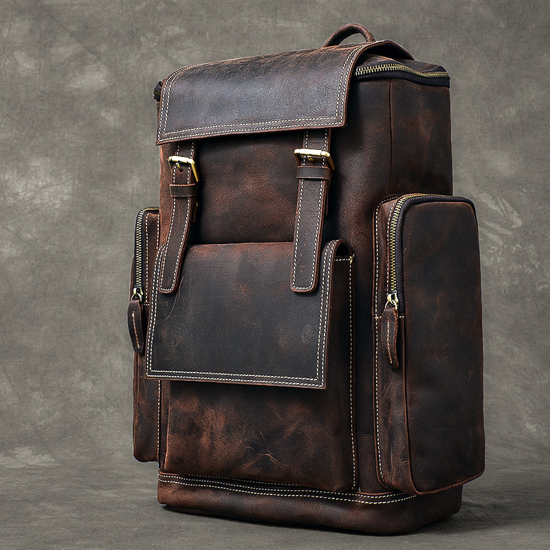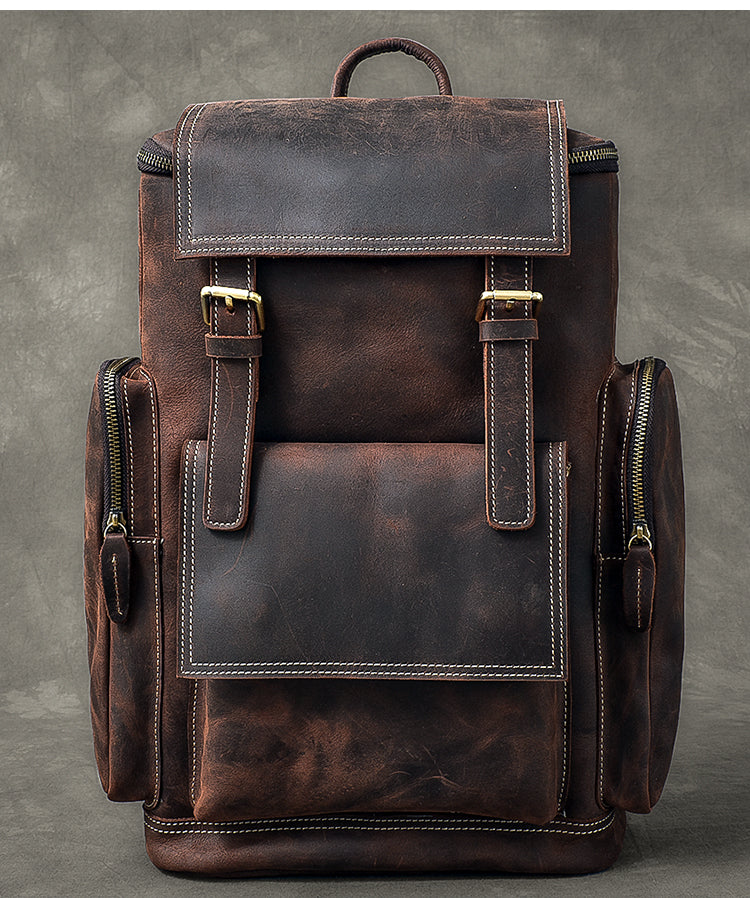 Brown Leather Mens 15' Laptop Backpack Travel Backpack Coffee College Backpack for Men – uleather